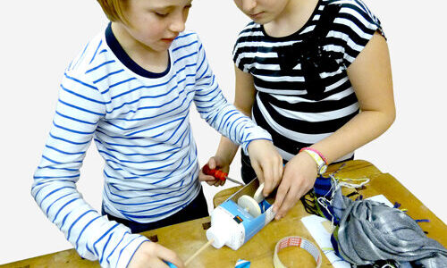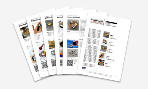 Praxisorientierte und unterrichtsleitende Hilfsmittel wie Five-Packs (5 Aufgaben), Tüftelwettbewerbe, Lernkoffer, Kartenspiele und Weiteres.